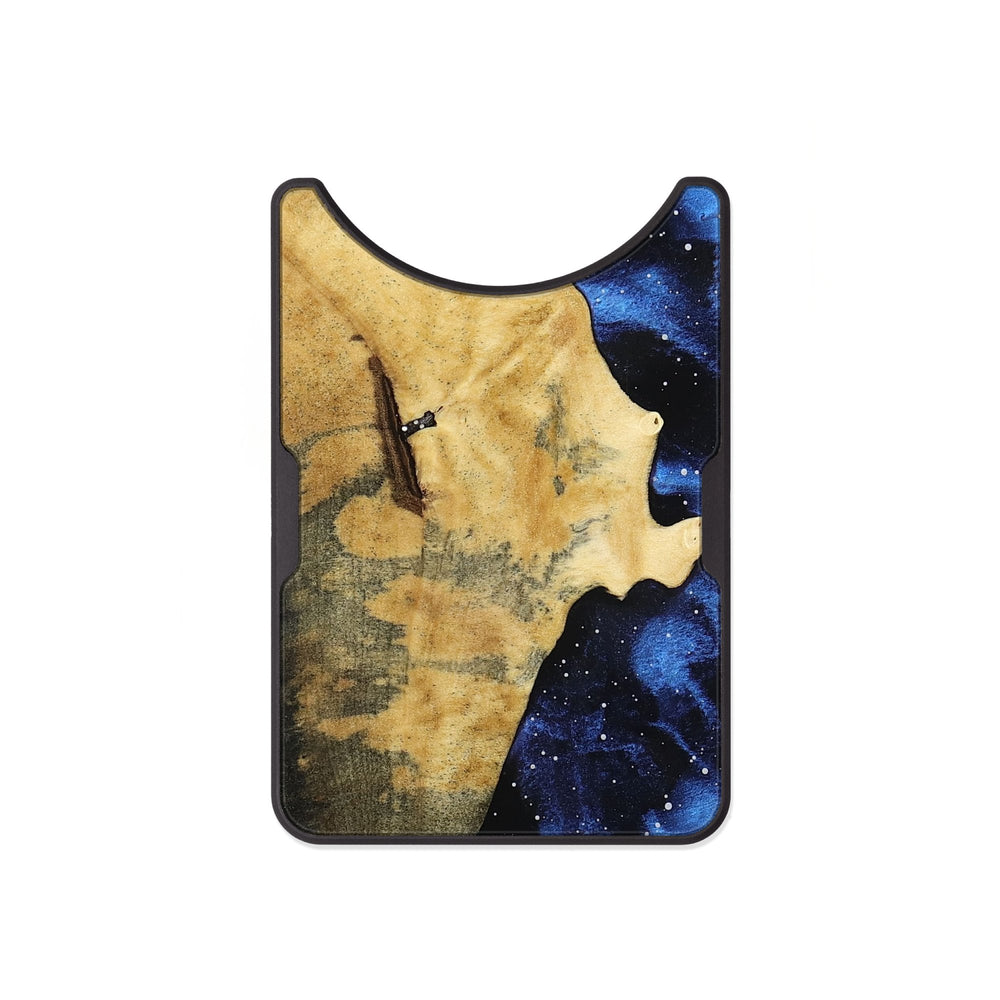 Eris is a stunning piece of Buckeye wood, showcasing natural grain patterns and warm tones. The wood contrasts beautifully with the deep blue background, creating a sense of depth and movement.