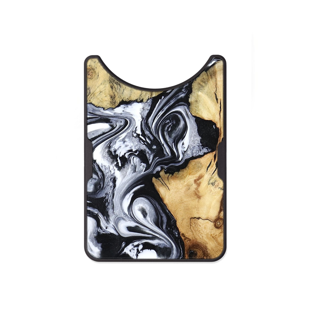 Estevan features warm tones of buckeye wood with a striking swirl pattern in black and white. The smooth grain adds a unique touch, enhancing its natural beauty.