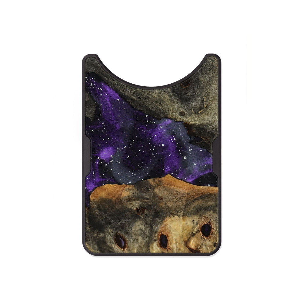 Iyanna has smooth, swirled patterns of dark and light wood tones. It features a vivid purple section that resembles a starry night, creating a unique contrast.