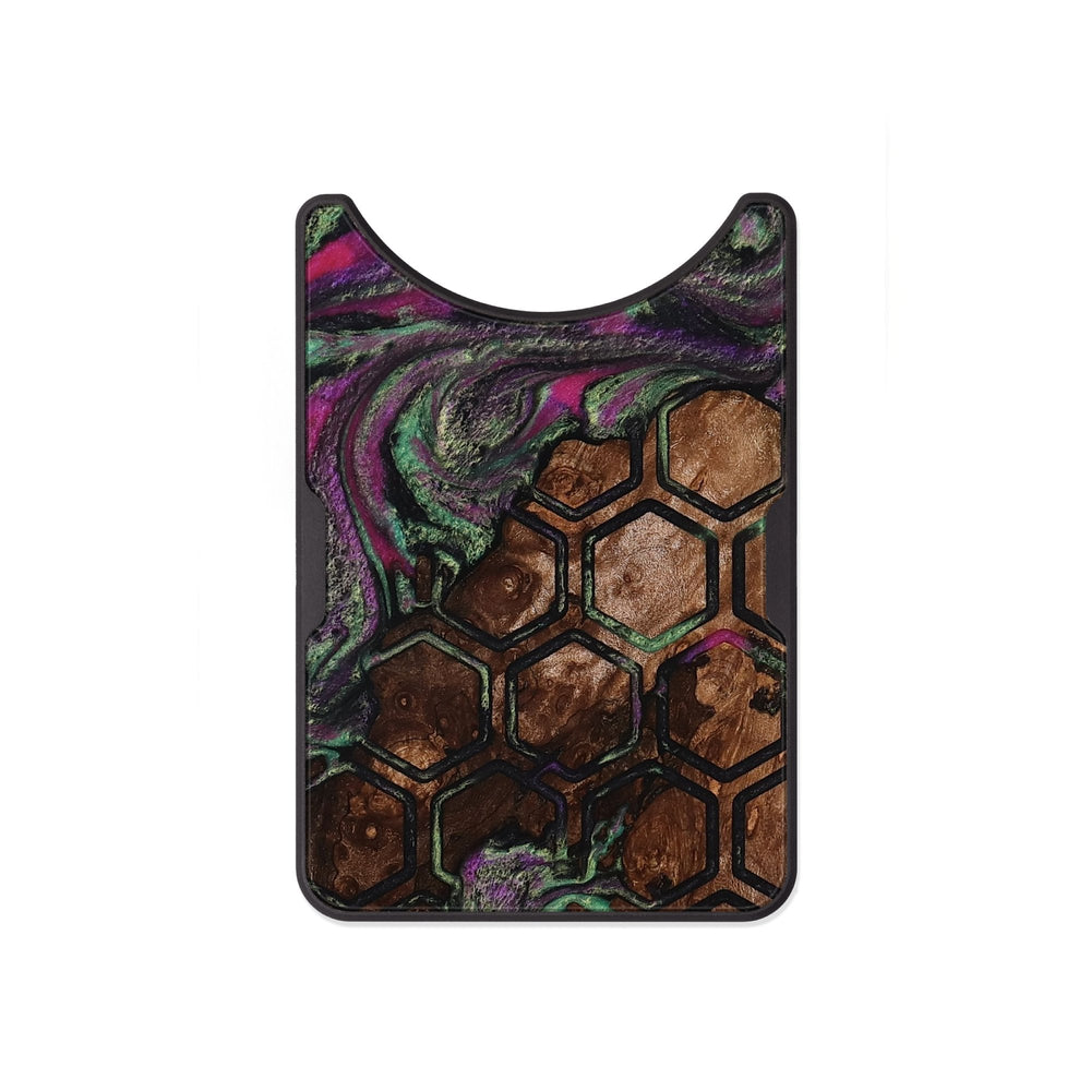 Janene has a beautiful blend of rich maple wood with a striking honeycomb pattern. Its colors swirl in shades of purple and green, creating a vibrant and dynamic look.