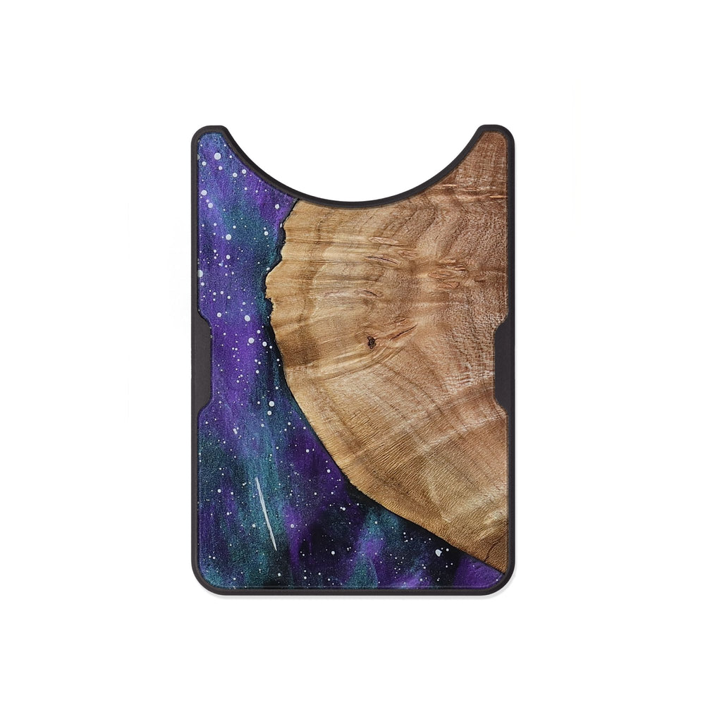 Jean is a piece of Maple wood with smooth, flowing lines and natural grain patterns. It contrasts beautifully with a purple and blue background, creating a cosmic feel.