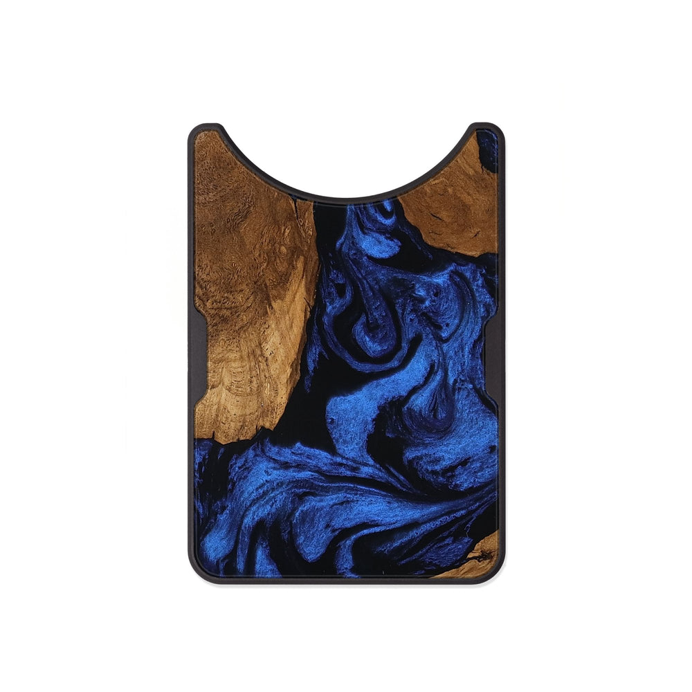 Joselin has beautiful olive wood with rich, swirling patterns in warm gold tones. The artwork features striking blue hues flowing through, creating a vibrant contrast.