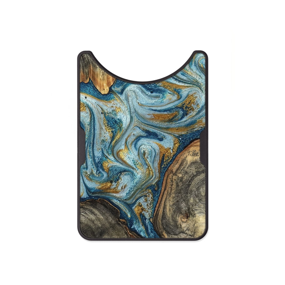 Joselyn has a beautiful blend of blue and gold swirling patterns that dance across its surfaces. The dark, rich wood contrasts nicely with the vibrant colors, creating a striking visual appeal.