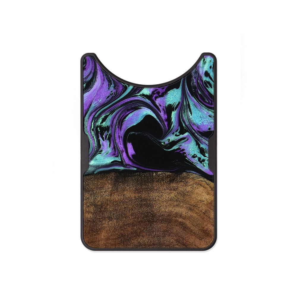 Kala has a warm maple wood base with rich, natural grain patterns. It features vibrant swirls of purple and blue, creating a striking contrast that adds a playful touch.
