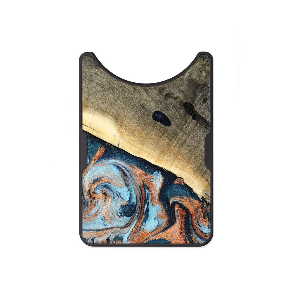 Kaleb has a smooth surface with beautiful swirls of blue, orange, and brown, creating a striking pattern. Its natural grain and colors bring warmth and character to any setting.