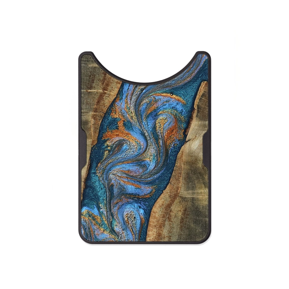 Latoya has beautiful, swirling patterns in shades of blue and copper that flow through the wood. The warm tones of the Buckeye wood create a lovely contrast with the cooler colors.