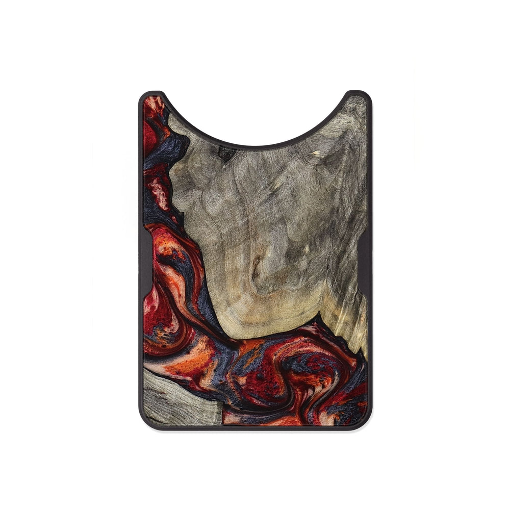 Leatha is a unique piece of Buckeye wood with smooth, natural patterns and a mix of warm colors. It showcases beautiful swirls of red and dark blue, creating an eye-catching design.
