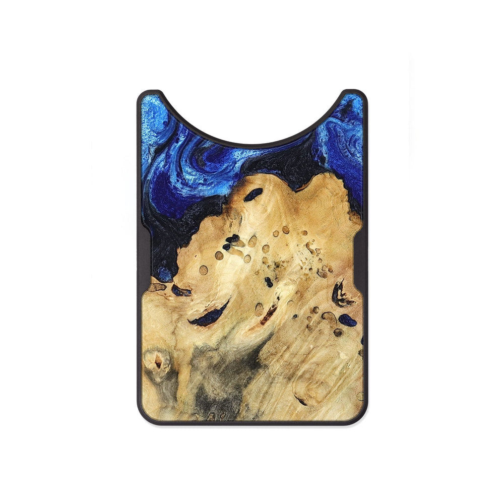 Macie has a beautiful blend of warm, golden tones with unique, dark markings throughout. The swirling blue patterns above add a striking contrast, creating a harmonious flow between wood and color.