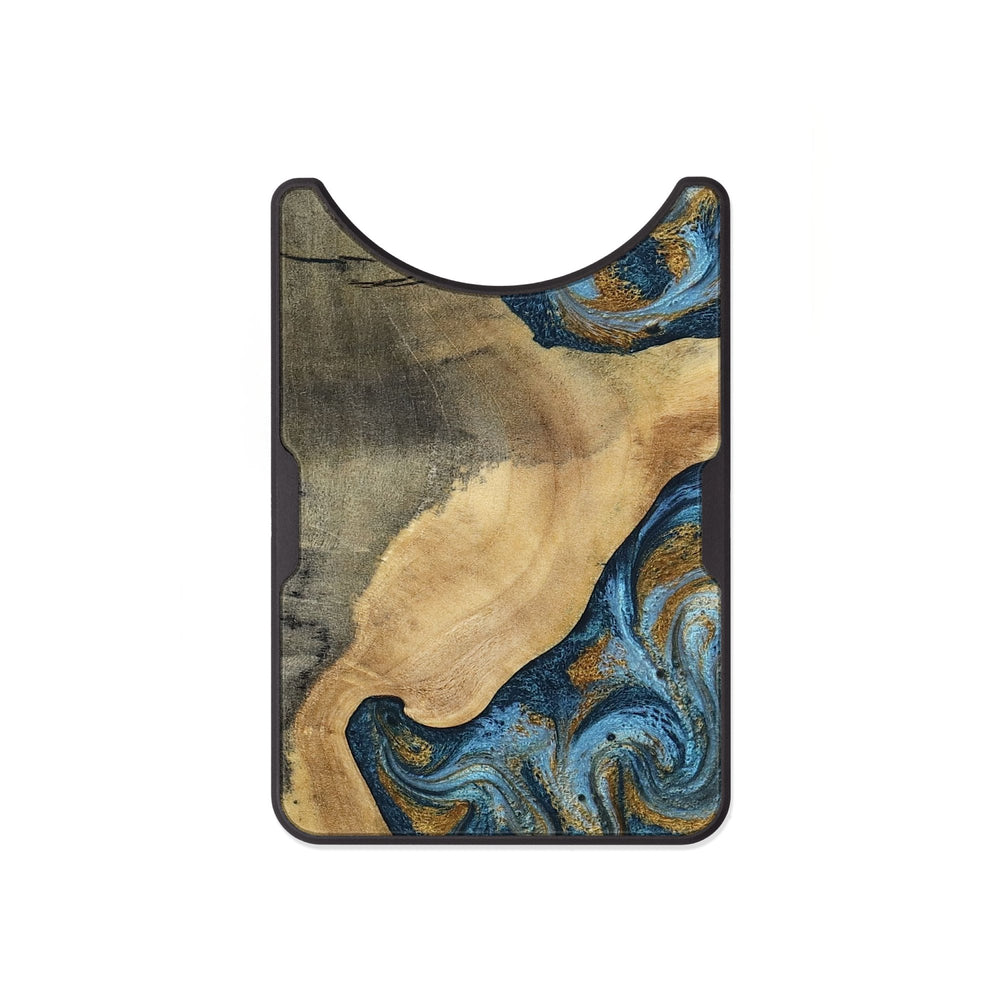Mack has beautiful swirls of blue and gold, creating a calming contrast with its natural wood tones. The flowing patterns give it a unique and artistic look, making each piece special.