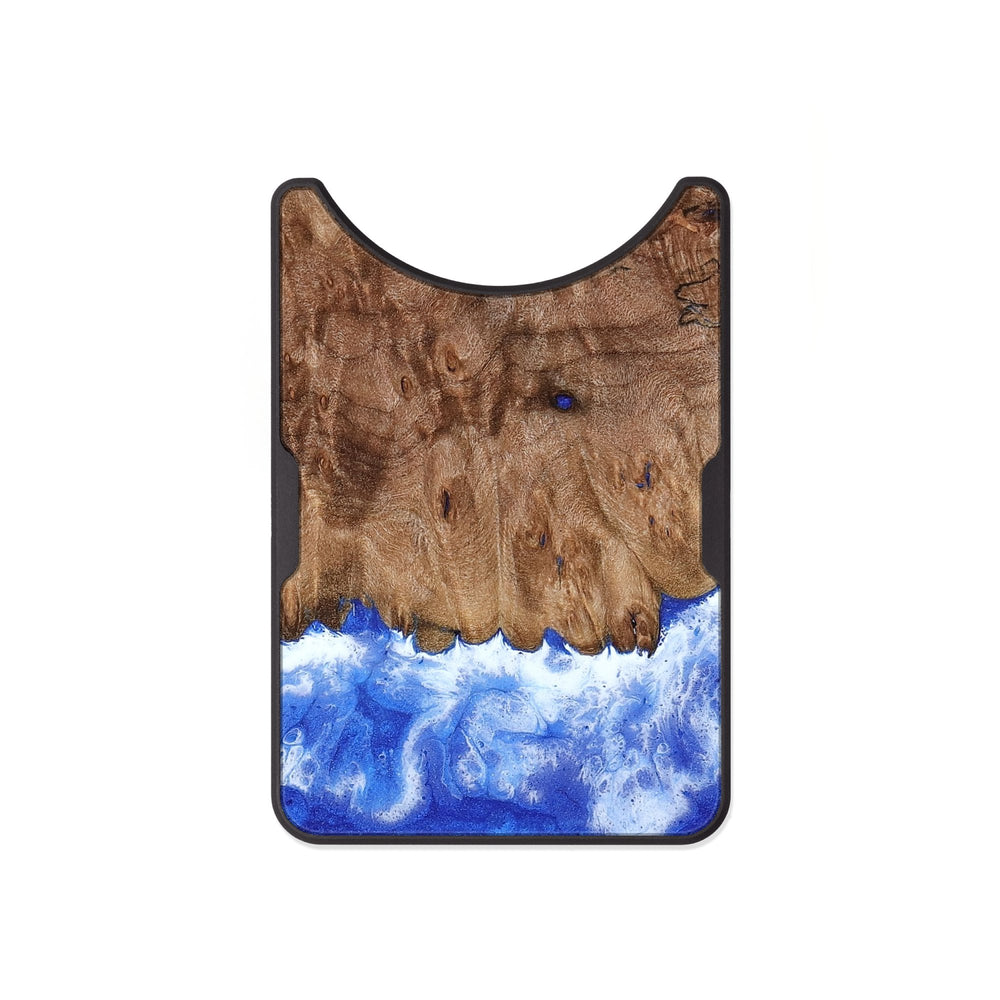 Minerva has a rich, warm texture with beautiful wood grain patterns that add depth. The gentle waves of blue at the bottom create a harmonious contrast with the brown of the Maple wood.