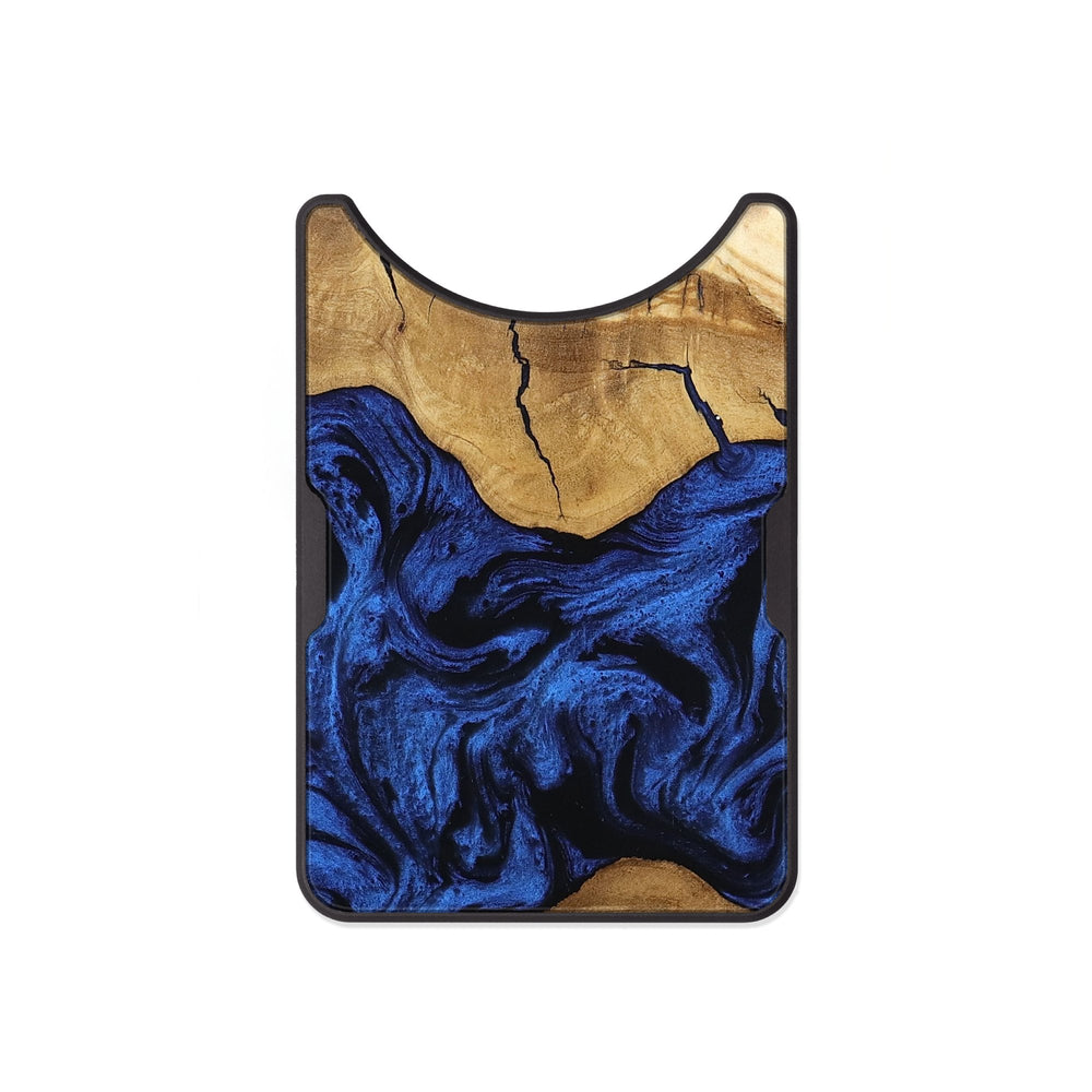 Mya has rich, warm tones of olive wood paired with deep blue swirls, creating a beautiful contrast. The flowing patterns across its surface give it a unique and engaging appearance.