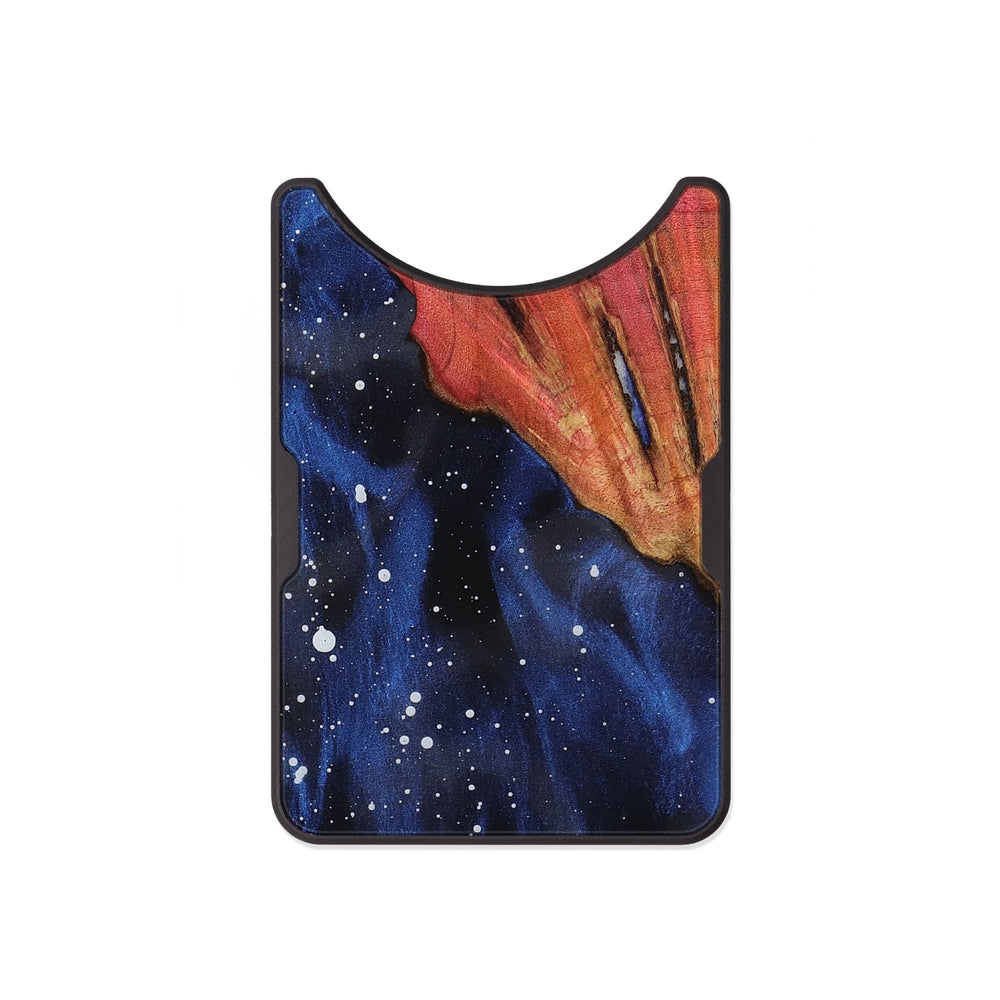 Rex has vibrant, swirling colors of red and blue, resembling a night sky. Its unique pattern showcases the natural beauty of the dyed wood.