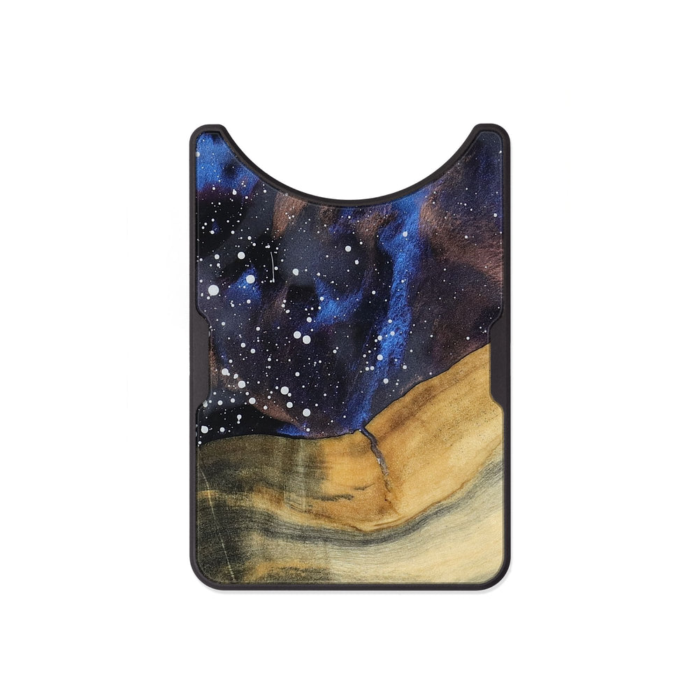 Seamus is a piece of Buckeye wood that showcases beautiful grains in warm, earthy tones. It features a smooth edge that contrasts nicely with a stunning celestial backdrop of deep blues and whites.