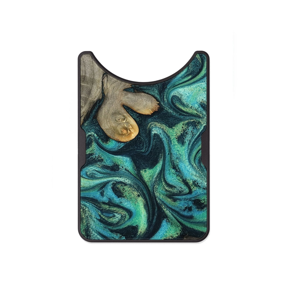 Sid has beautiful swirling patterns in vibrant shades of blue and green. The wood features unique textures and shapes that add depth and interest.