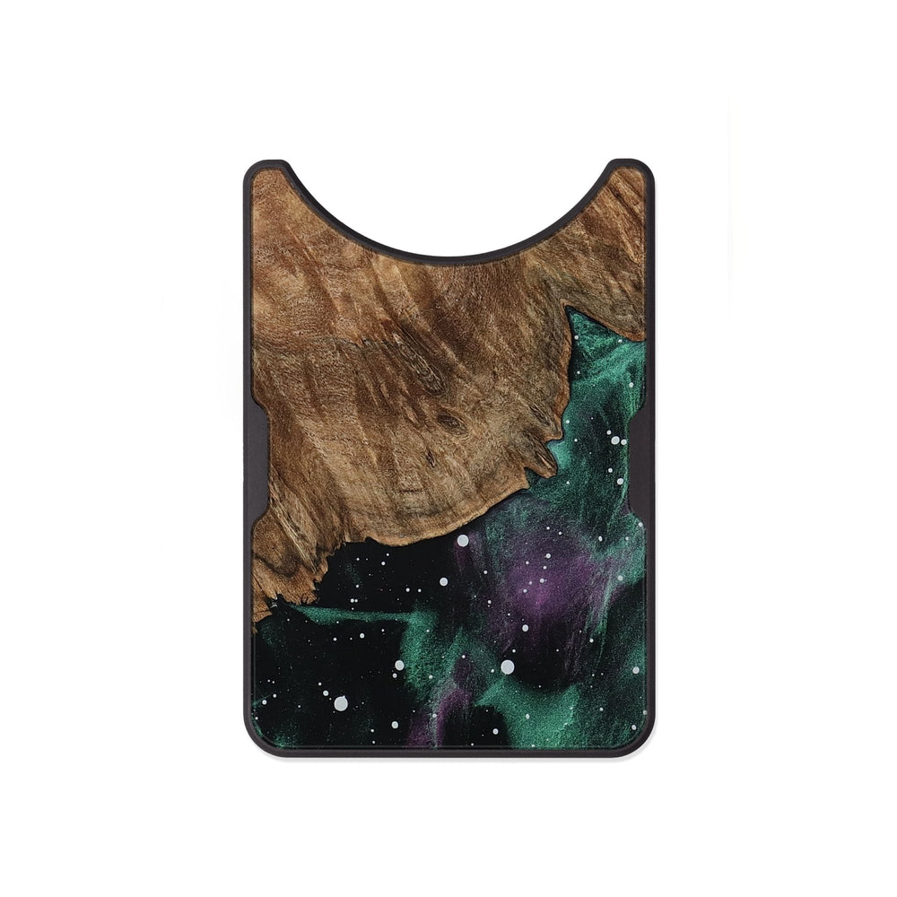 Suzan has a warm, rich maple wood surface with flowing, natural grain patterns. Its colors blend softly into a deep, cosmic backdrop of greens and purples, creating a serene and inviting look.