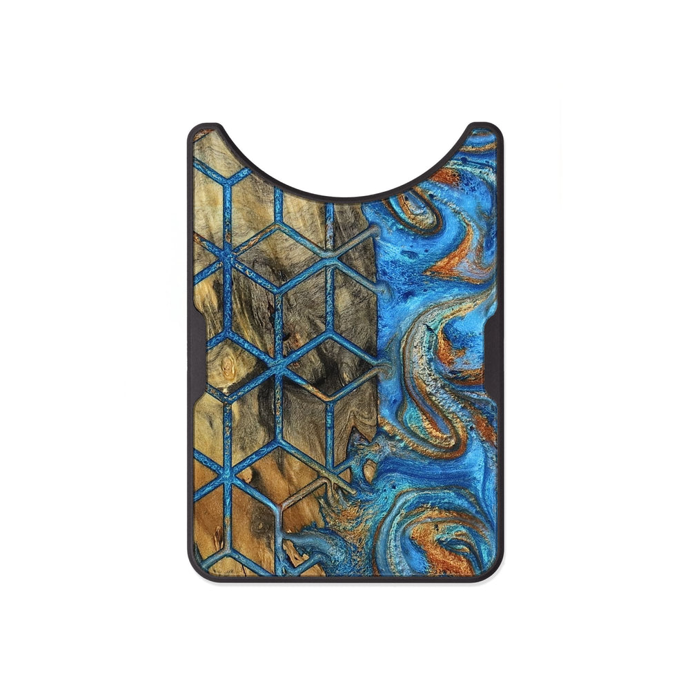 Each wallet is machined from a single block of Aluminum, anodized, laser etched and then we add our unique Wood+Resin slice on the back. We designed our wallet to perfectly fit a standard credit card size, it will safely hold 1 card as well as it holds 5. You can definitely slide more than 5 in but we designed it to be a perfect fit for up to 5 cards.