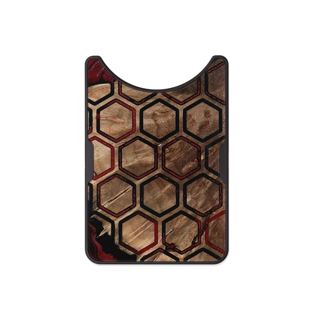 Each wallet is machined from a single block of Aluminum, anodized, laser etched and then we add our unique Wood+Resin slice on the back. We designed our wallet to perfectly fit a standard credit card size, it will safely hold 1 card as well as it holds 5. You can definitely slide more than 5 in but we designed it to be a perfect fit for up to 5 cards.