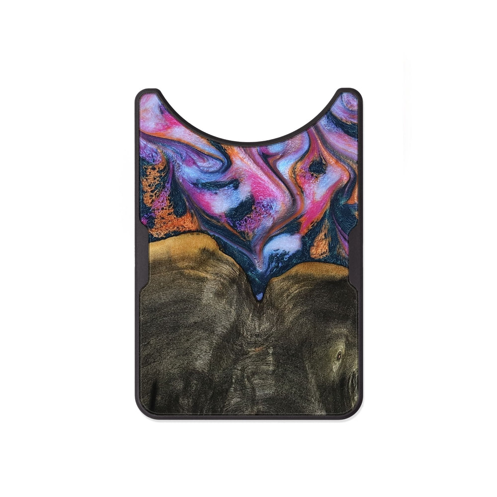 Tristan has a unique blend of dark and light wood, showcasing rich, warm tones. The surface features swirling patterns in vibrant pinks and blues, creating an eye-catching contrast.
