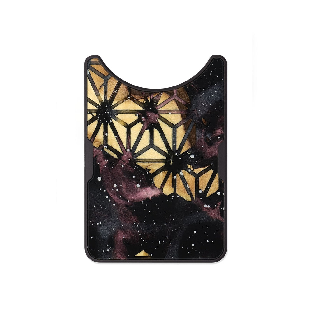 Verne has a striking pattern of geometric shapes that blend warm tones with dark, cosmic colors. The contrast creates a beautiful harmony between light and shadow.
