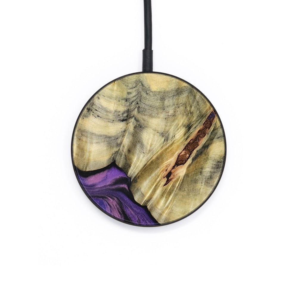Perfectly simple, MagSafe compatible, USB-C, 1 of a kind Wireless Qi charger. CNC machined aluminum body. Every Wood+Resin inlay is unique and made at our shop in Elkhart, Indiana.