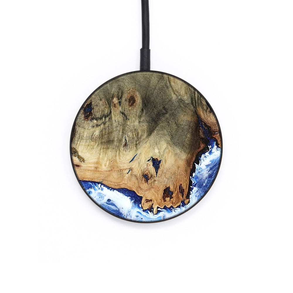 Perfectly simple, MagSafe compatible, USB-C, 1 of a kind Wireless Qi charger. CNC machined aluminum body. Every Wood+Resin inlay is unique and made at our shop in Elkhart, Indiana.