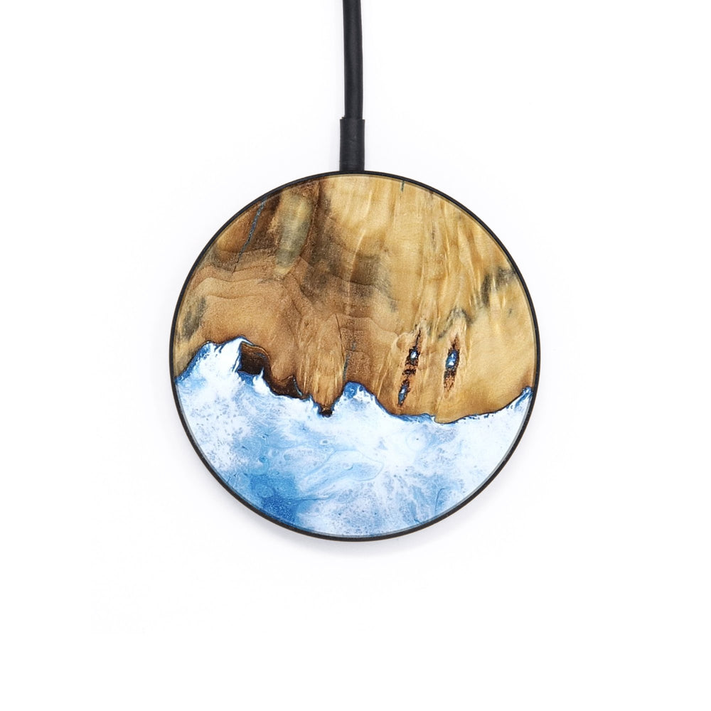 Perfectly simple, MagSafe compatible, USB-C, 1 of a kind Wireless Qi charger. CNC machined aluminum body. Every Wood+Resin inlay is unique and made at our shop in Elkhart, Indiana.