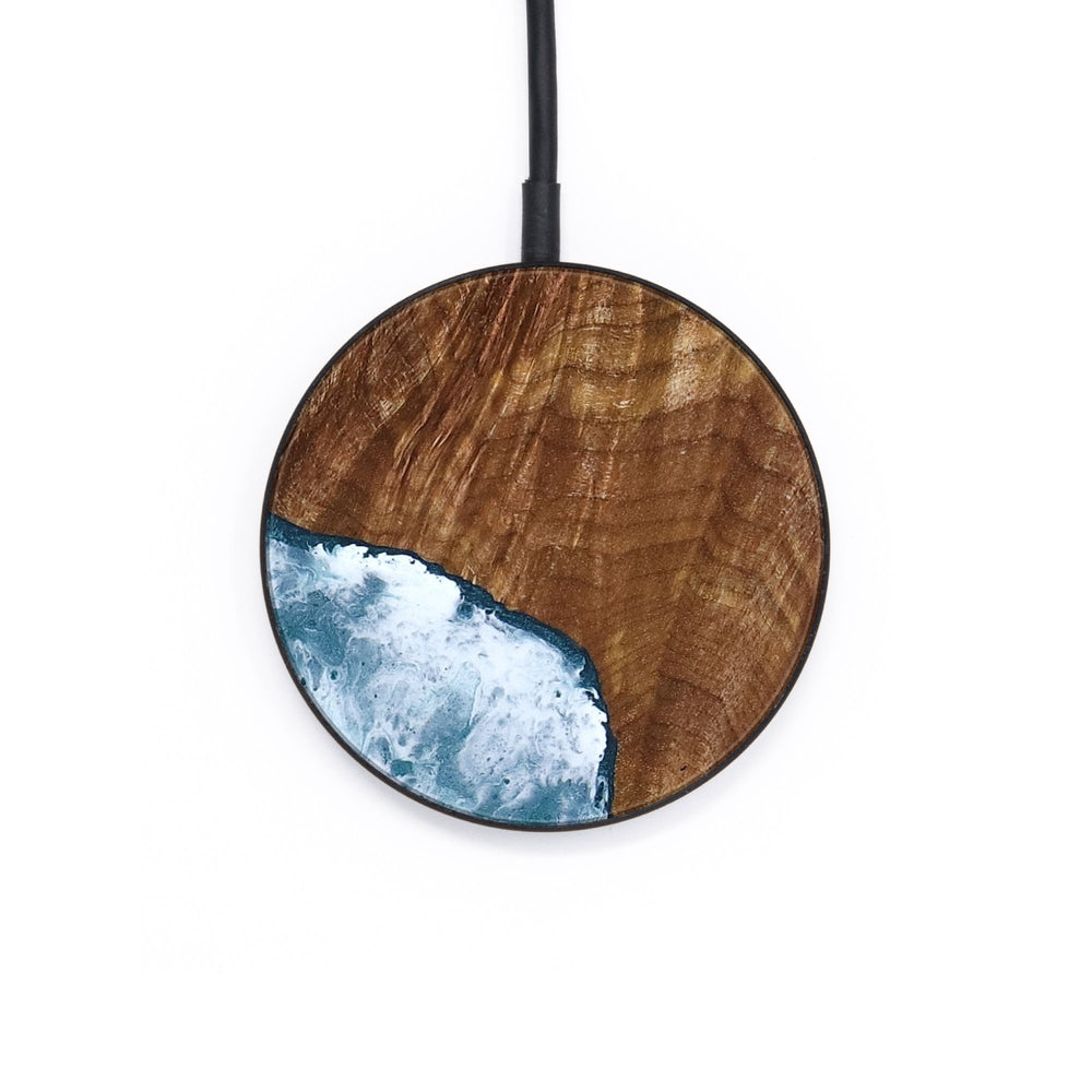 Perfectly simple, MagSafe compatible, USB-C, 1 of a kind Wireless Qi charger. CNC machined aluminum body. Every Wood+Resin inlay is unique and made at our shop in Elkhart, Indiana.