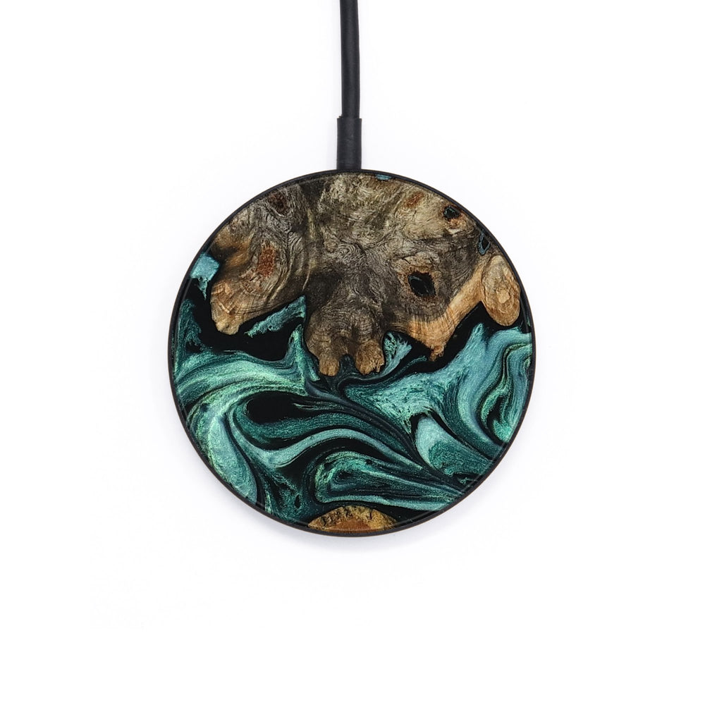 Perfectly simple, MagSafe compatible, USB-C, 1 of a kind Wireless Qi charger. CNC machined aluminum body. Every Wood+Resin inlay is unique and made at our shop in Elkhart, Indiana.
