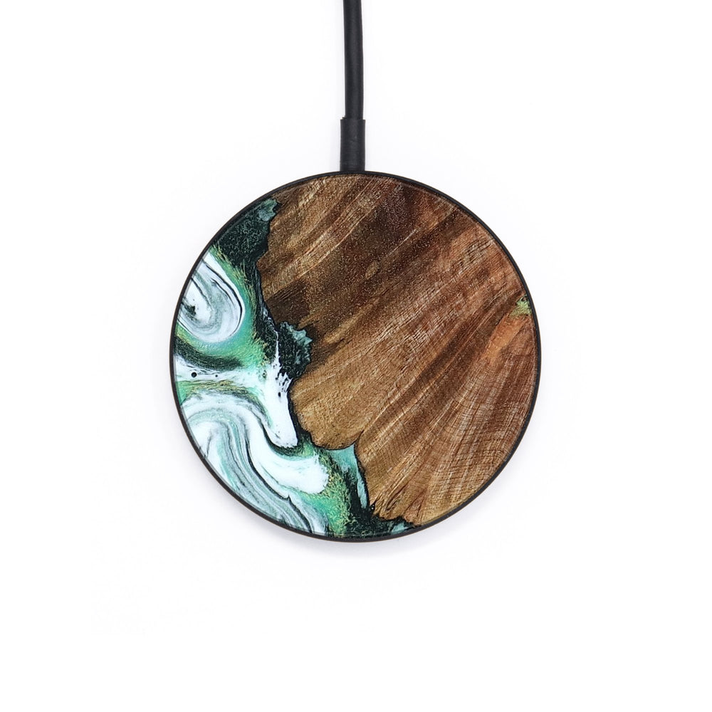 Perfectly simple, MagSafe compatible, USB-C, 1 of a kind Wireless Qi charger. CNC machined aluminum body. Every Wood+Resin inlay is unique and made at our shop in Elkhart, Indiana.