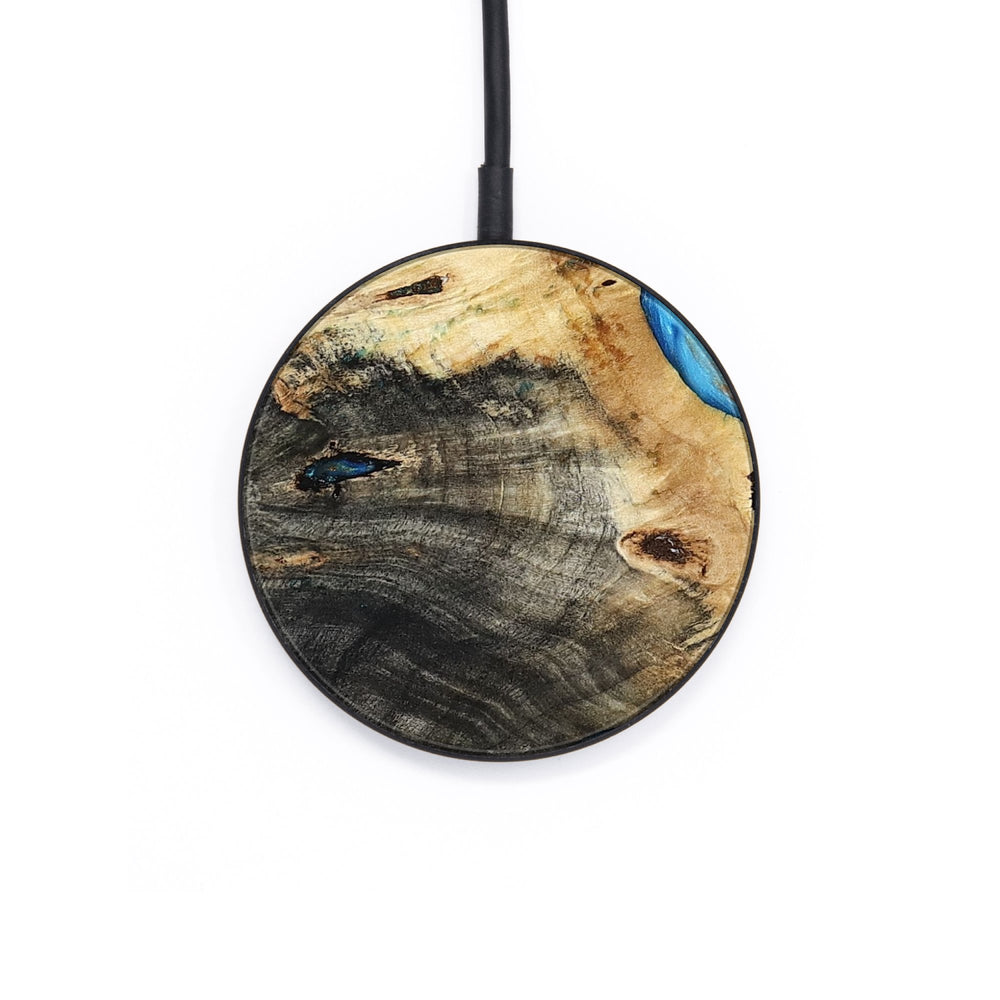 Perfectly simple, MagSafe compatible, USB-C, 1 of a kind Wireless Qi charger. CNC machined aluminum body. Every Wood+Resin inlay is unique and made at our shop in Elkhart, Indiana.