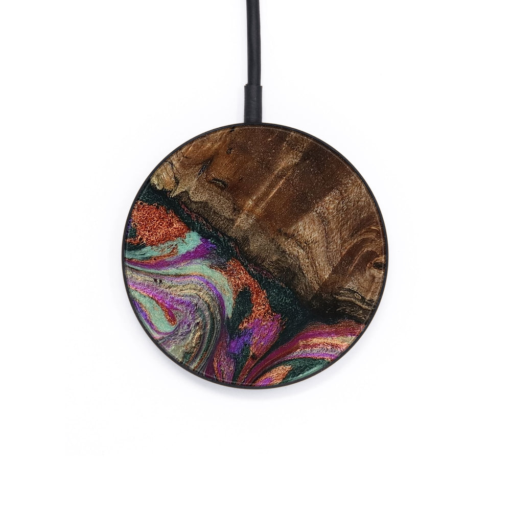 Perfectly simple, MagSafe compatible, USB-C, 1 of a kind Wireless Qi charger. CNC machined aluminum body. Every Wood+Resin inlay is unique and made at our shop in Elkhart, Indiana.
