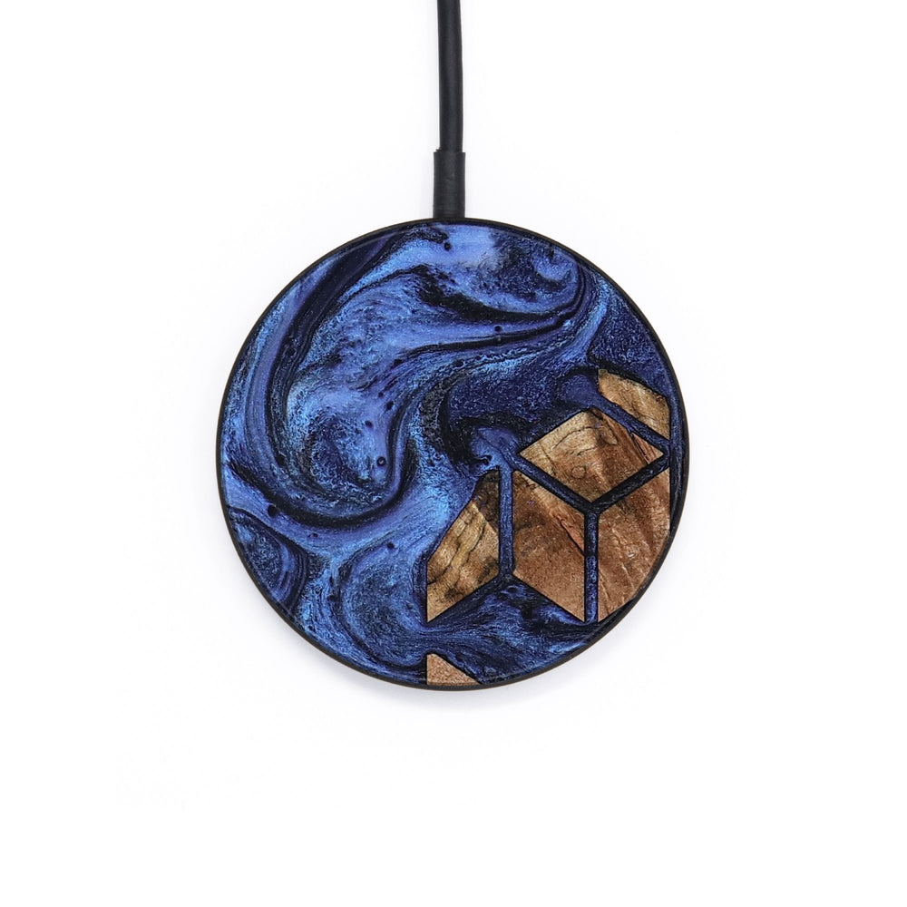 Perfectly simple, MagSafe compatible, USB-C, 1 of a kind Wireless Qi charger. CNC machined aluminum body. Every Wood+Resin inlay is unique and made at our shop in Elkhart, Indiana.