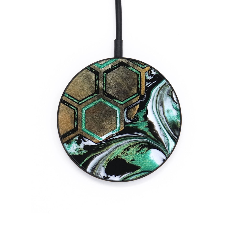 Perfectly simple, MagSafe compatible, USB-C, 1 of a kind Wireless Qi charger. CNC machined aluminum body. Every Wood+Resin inlay is unique and made at our shop in Elkhart, Indiana.