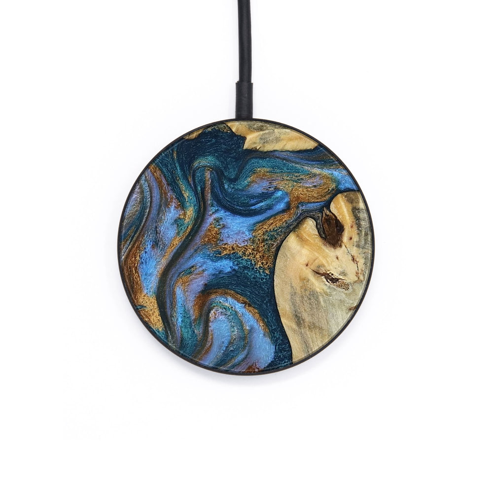 Perfectly simple, MagSafe compatible, USB-C, 1 of a kind Wireless Qi charger. CNC machined aluminum body. Every Wood+Resin inlay is unique and made at our shop in Elkhart, Indiana.