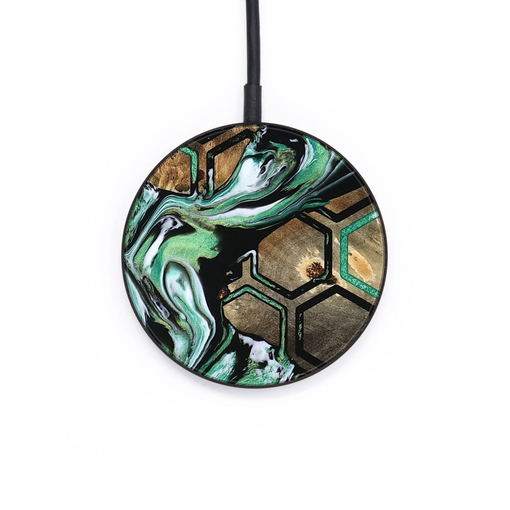 Perfectly simple, MagSafe compatible, USB-C, 1 of a kind Wireless Qi charger. CNC machined aluminum body. Every Wood+Resin inlay is unique and made at our shop in Elkhart, Indiana.