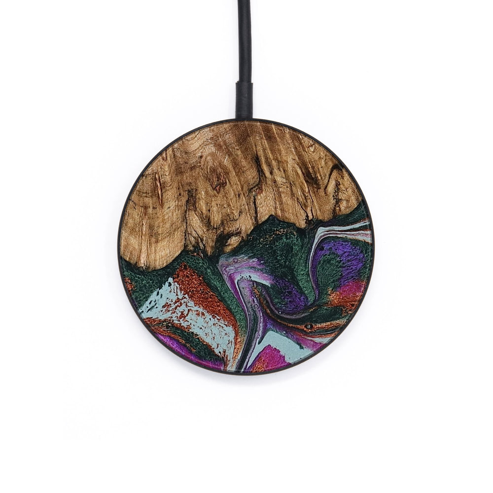 Perfectly simple, MagSafe compatible, USB-C, 1 of a kind Wireless Qi charger. CNC machined aluminum body. Every Wood+Resin inlay is unique and made at our shop in Elkhart, Indiana.