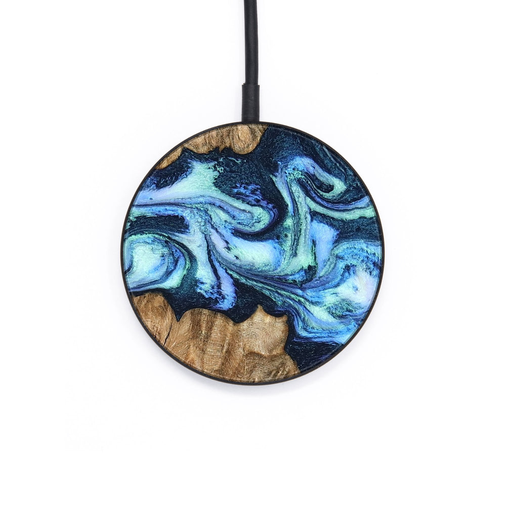 Perfectly simple, MagSafe compatible, USB-C, 1 of a kind Wireless Qi charger. CNC machined aluminum body. Every Wood+Resin inlay is unique and made at our shop in Elkhart, Indiana.
