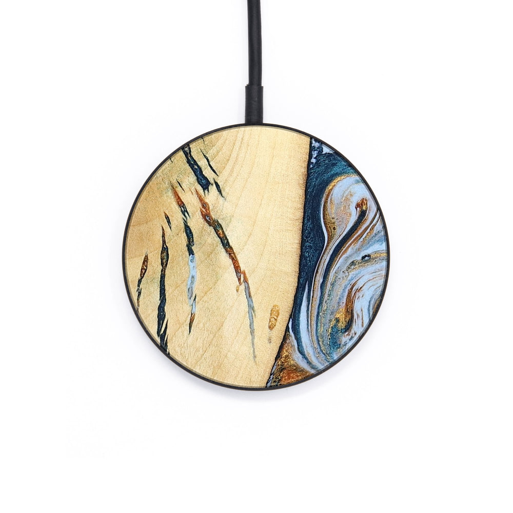 Perfectly simple, MagSafe compatible, USB-C, 1 of a kind Wireless Qi charger. CNC machined aluminum body. Every Wood+Resin inlay is unique and made at our shop in Elkhart, Indiana.