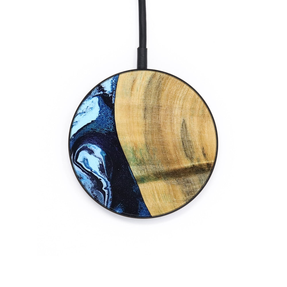 Perfectly simple, MagSafe compatible, USB-C, 1 of a kind Wireless Qi charger. CNC machined aluminum body. Every Wood+Resin inlay is unique and made at our shop in Elkhart, Indiana.