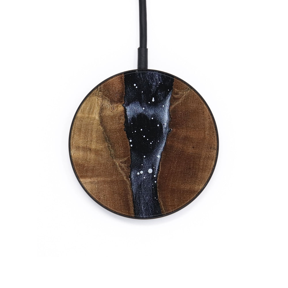 Perfectly simple, MagSafe compatible, USB-C, 1 of a kind Wireless Qi charger. CNC machined aluminum body. Every Wood+Resin inlay is unique and made at our shop in Elkhart, Indiana.
