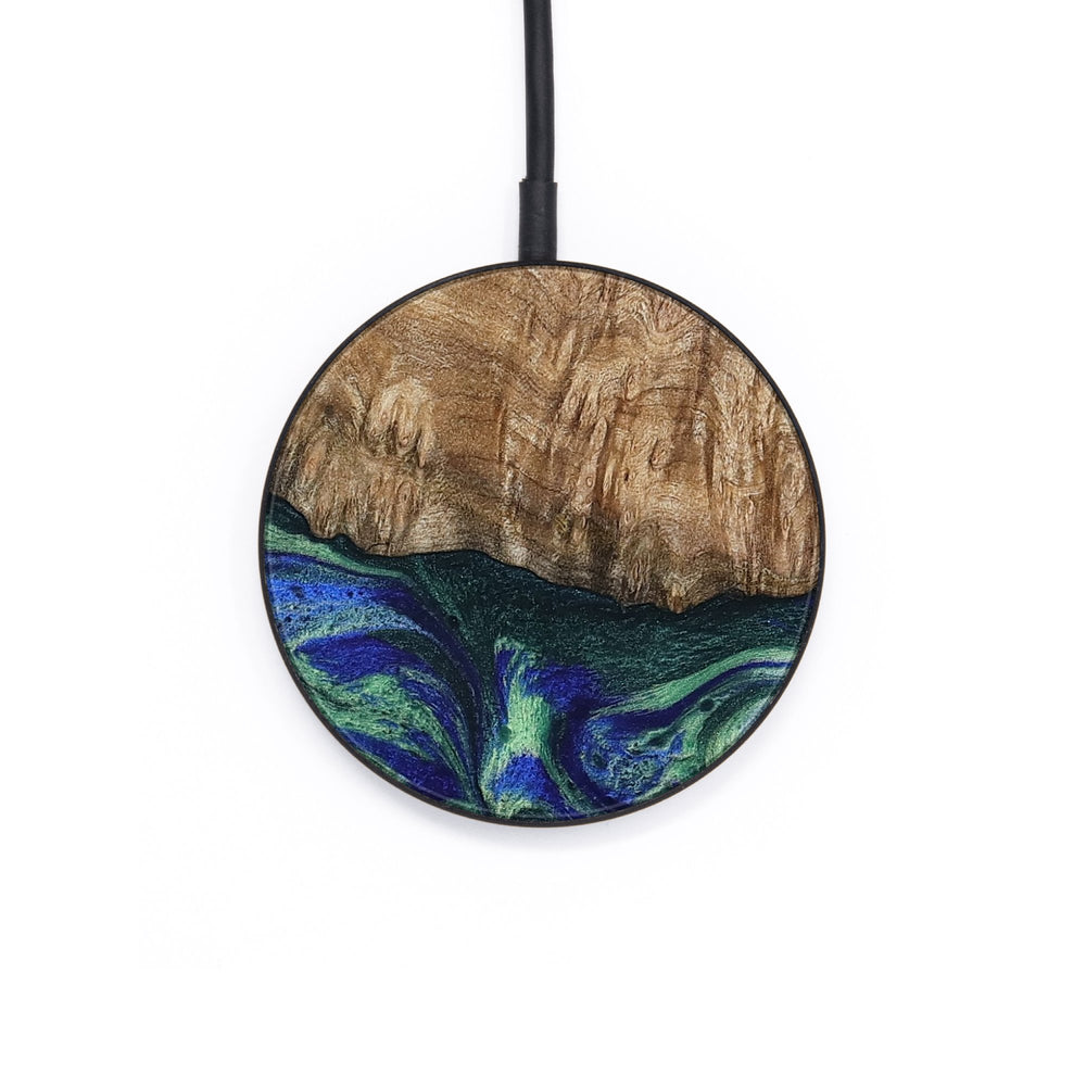 Perfectly simple, MagSafe compatible, USB-C, 1 of a kind Wireless Qi charger. CNC machined aluminum body. Every Wood+Resin inlay is unique and made at our shop in Elkhart, Indiana.