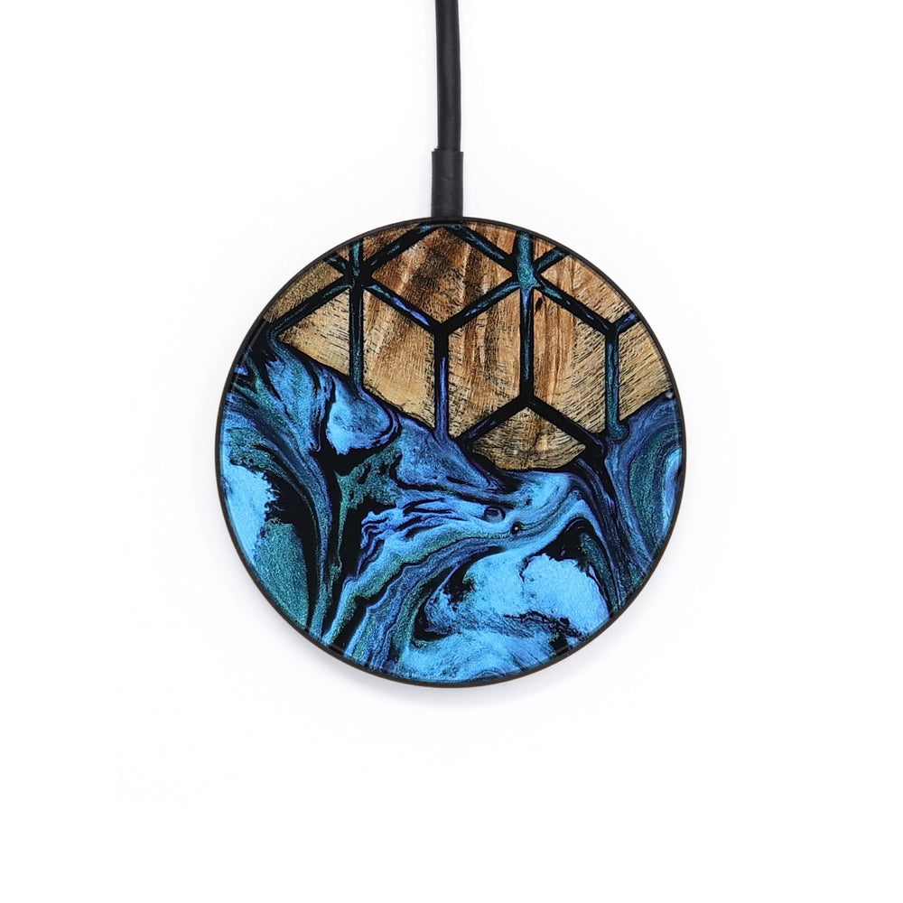 Perfectly simple, MagSafe compatible, USB-C, 1 of a kind Wireless Qi charger. CNC machined aluminum body. Every Wood+Resin inlay is unique and made at our shop in Elkhart, Indiana.