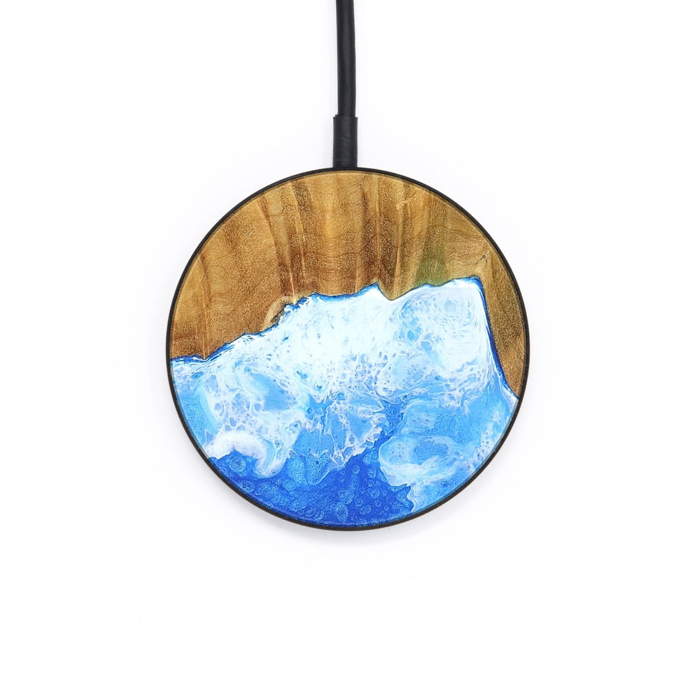 Perfectly simple, MagSafe compatible, USB-C, 1 of a kind Wireless Qi charger. CNC machined aluminum body. Every Wood+Resin inlay is unique and made at our shop in Elkhart, Indiana.