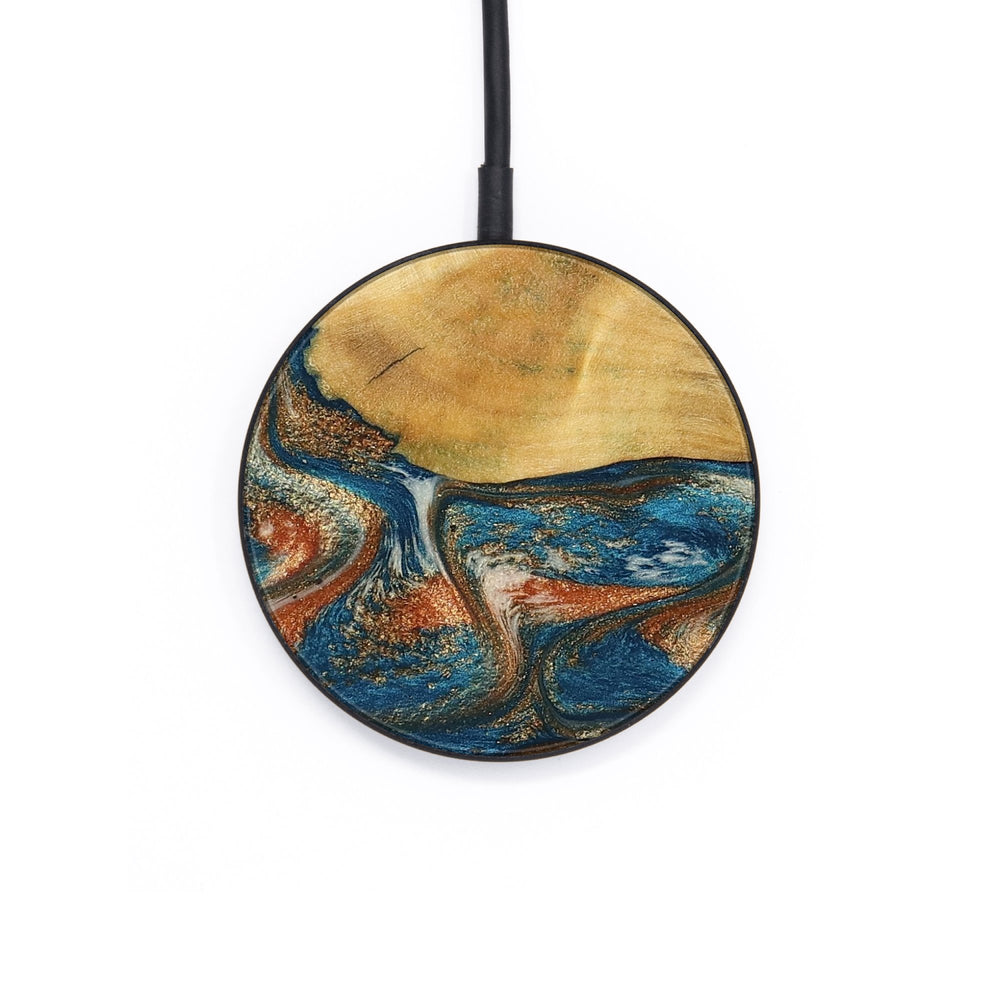 Perfectly simple, MagSafe compatible, USB-C, 1 of a kind Wireless Qi charger. CNC machined aluminum body. Every Wood+Resin inlay is unique and made at our shop in Elkhart, Indiana.