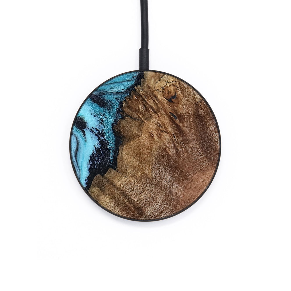 Perfectly simple, MagSafe compatible, USB-C, 1 of a kind Wireless Qi charger. CNC machined aluminum body. Every Wood+Resin inlay is unique and made at our shop in Elkhart, Indiana.