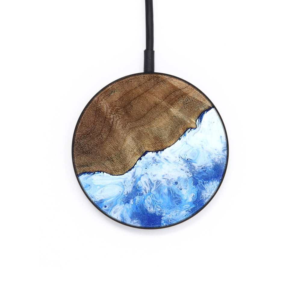 Perfectly simple, MagSafe compatible, USB-C, 1 of a kind Wireless Qi charger. CNC machined aluminum body. Every Wood+Resin inlay is unique and made at our shop in Elkhart, Indiana.