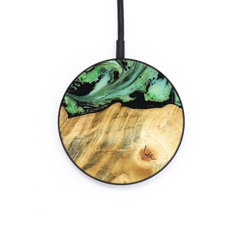 Perfectly simple, MagSafe compatible, USB-C, 1 of a kind Wireless Qi charger. CNC machined aluminum body. Every Wood+Resin inlay is unique and made at our shop in Elkhart, Indiana.