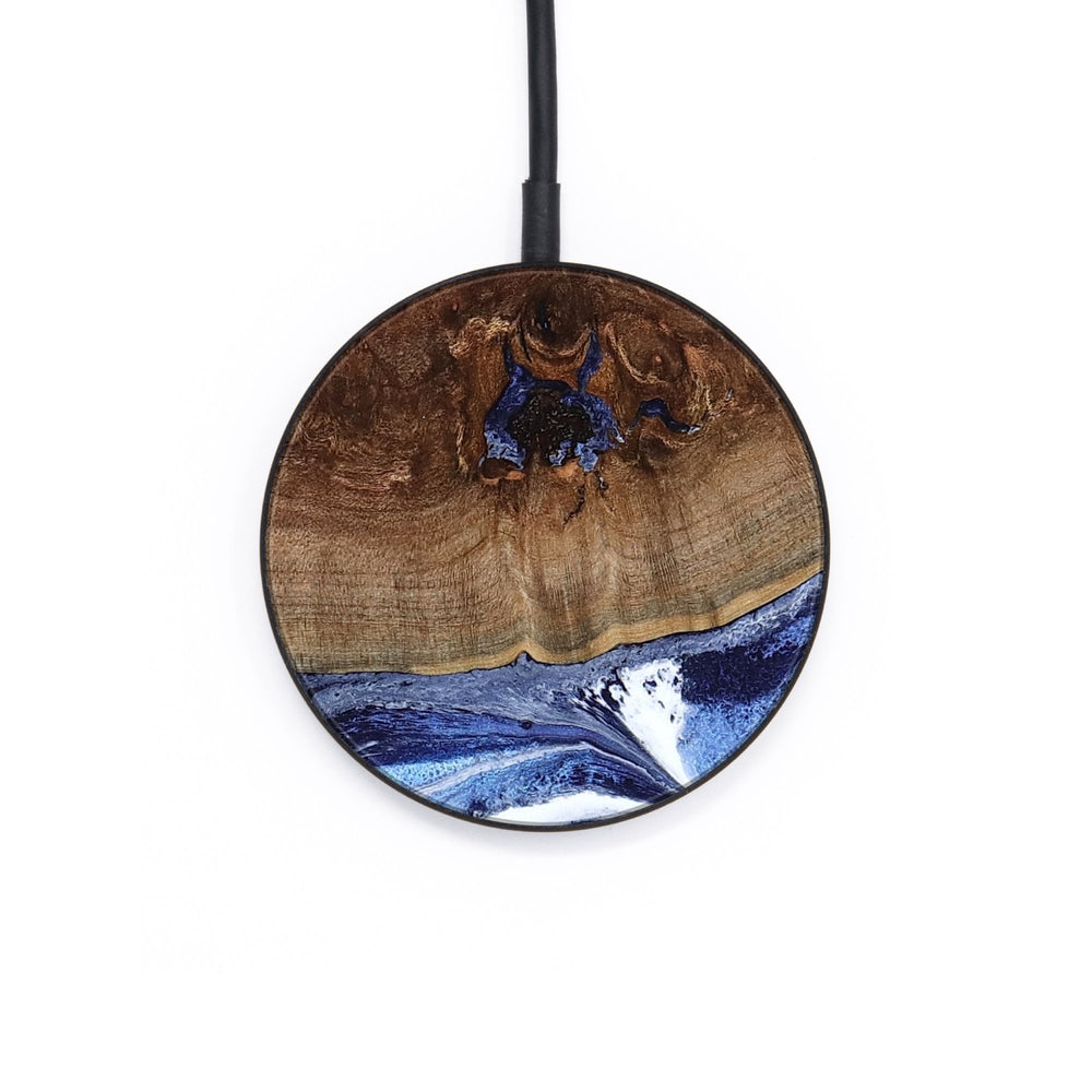 Perfectly simple, MagSafe compatible, USB-C, 1 of a kind Wireless Qi charger. CNC machined aluminum body. Every Wood+Resin inlay is unique and made at our shop in Elkhart, Indiana.
