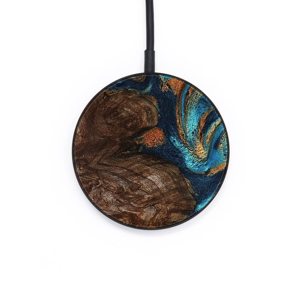 Perfectly simple, MagSafe compatible, USB-C, 1 of a kind Wireless Qi charger. CNC machined aluminum body. Every Wood+Resin inlay is unique and made at our shop in Elkhart, Indiana.