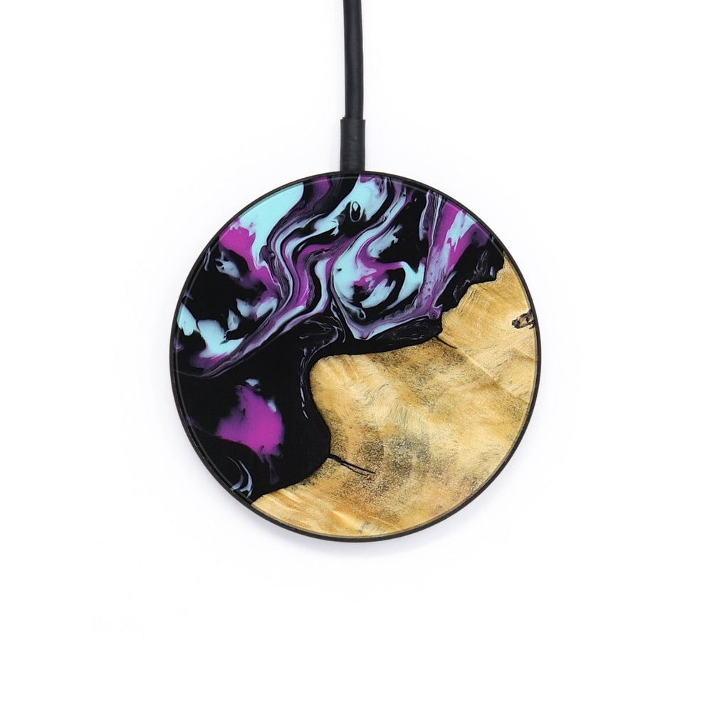 Perfectly simple, MagSafe compatible, USB-C, 1 of a kind Wireless Qi charger. CNC machined aluminum body. Every Wood+Resin inlay is unique and made at our shop in Elkhart, Indiana.